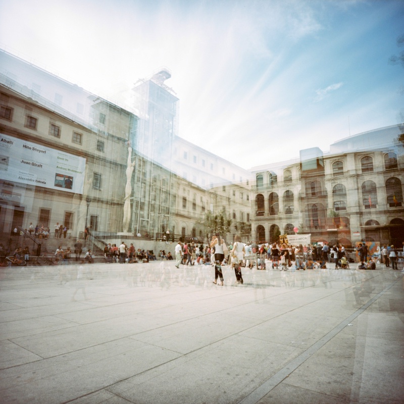 Empiezo con una serie de fotografías realizadas en 2015, cuando retomo mi acción fotográfica de nuevo con fotografía analógica y con una cámara que ya vendí hace algún tiempo. La Lomo LCA de 120 y una película de Kodak Portra 400. También hay algunos juegos visuales, dobles exposiciones y mucha curiosidad por probar la cámara. Recuerdo que una vigilante del museo me quiso amonestar pensando que estaba grabando vídeos, cosa prohibida, y cuando vio la cámara de cerca, no supo ni qué decir.